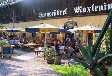 Il Bräustüberl Maxlrain – famoso per la sua birreria all'aperto, i cibi bavaresi e la fresca birra di Maxlrain